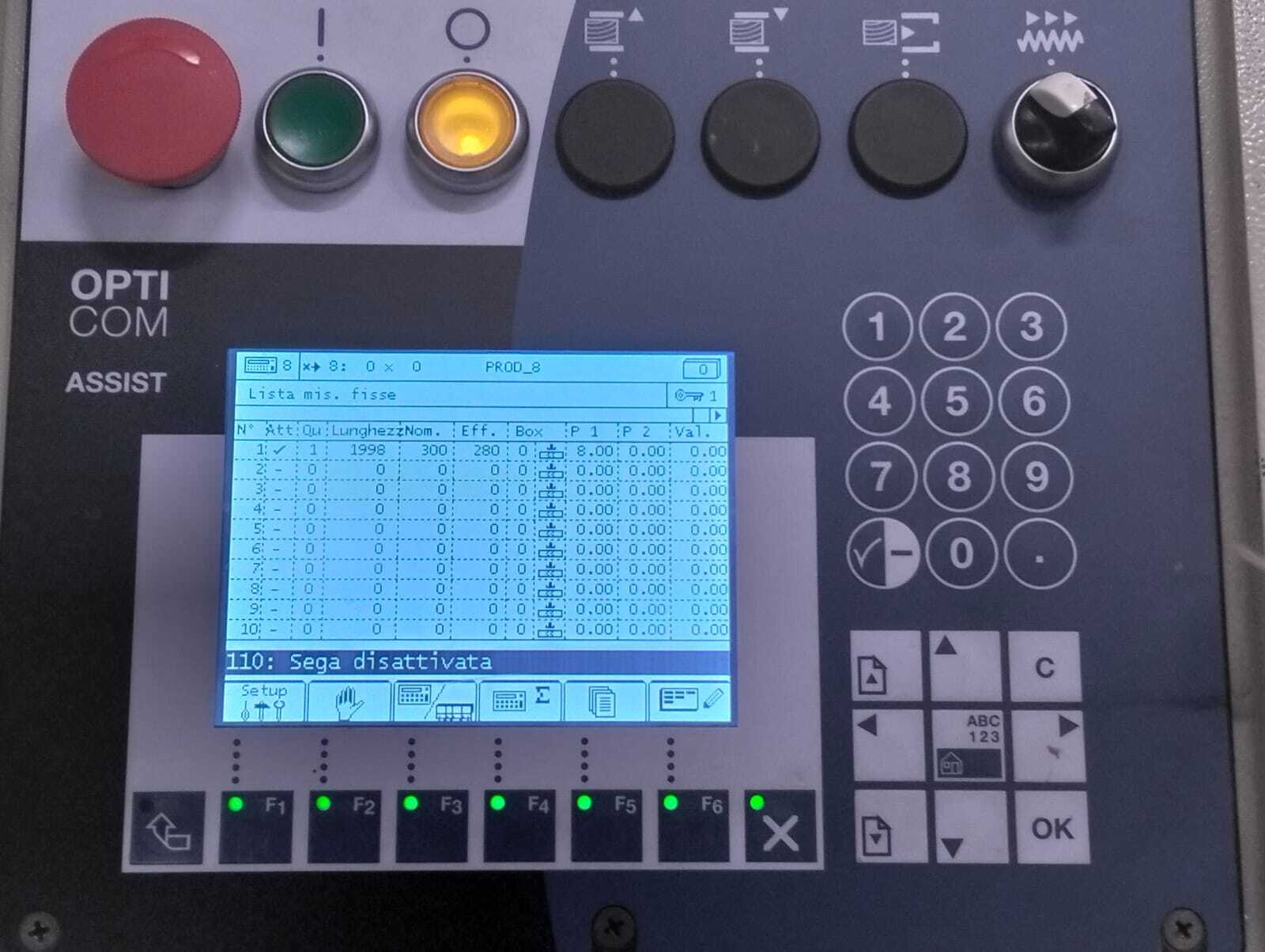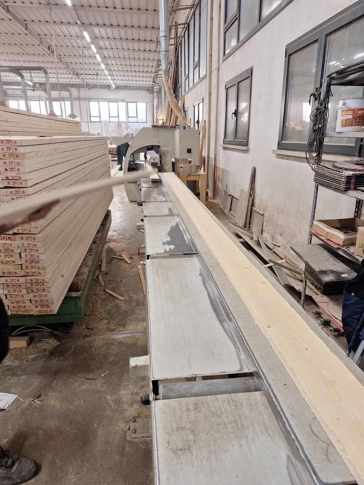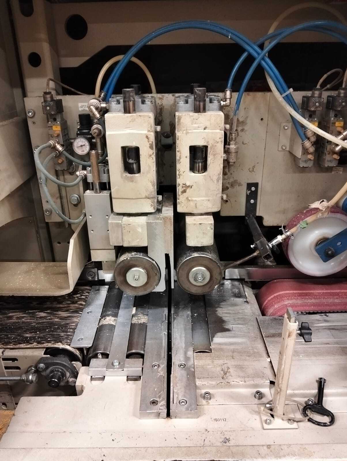 Descrizione: TRONCATRICE USATA WEINIG OPTICUT 150 ANNO 2002 - Diametro la a 500 mm – Foro lama 30 mm - Lunghezza in entrata 500 mm - Larghezza legno 30 – 300 mm - Spessore legno 12 – 80 mm - Sezione legno (generalmente rettangolare) 220 x 80 mm / 290 x 25 mm - Tolleranza dello spessore +/- 3 mm - Velocità di avanzamento max. 150 m/min. - Potenza motore lama 5,5 KW - Potenza motore avanzamento 3 KW - Stazione introduzione e marcatura: lunghezza 5 m per max lunghezza entrata 6,3 m - Introduzione della sega con nastro ca. 2500 mm - Nastro trasportatore in uscita 10 m con 4 espulsori